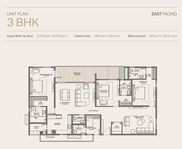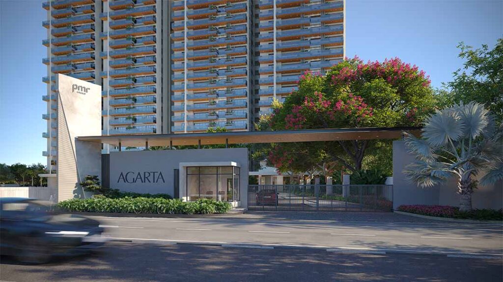 PMR Dithya Agarta offers 3 & 4 BHK ultra-luxury homes with servant quarters, spacious layouts, and sizes ranging from 3100 to 4224 sq. ft., ensuring expansive living and complete privacy.