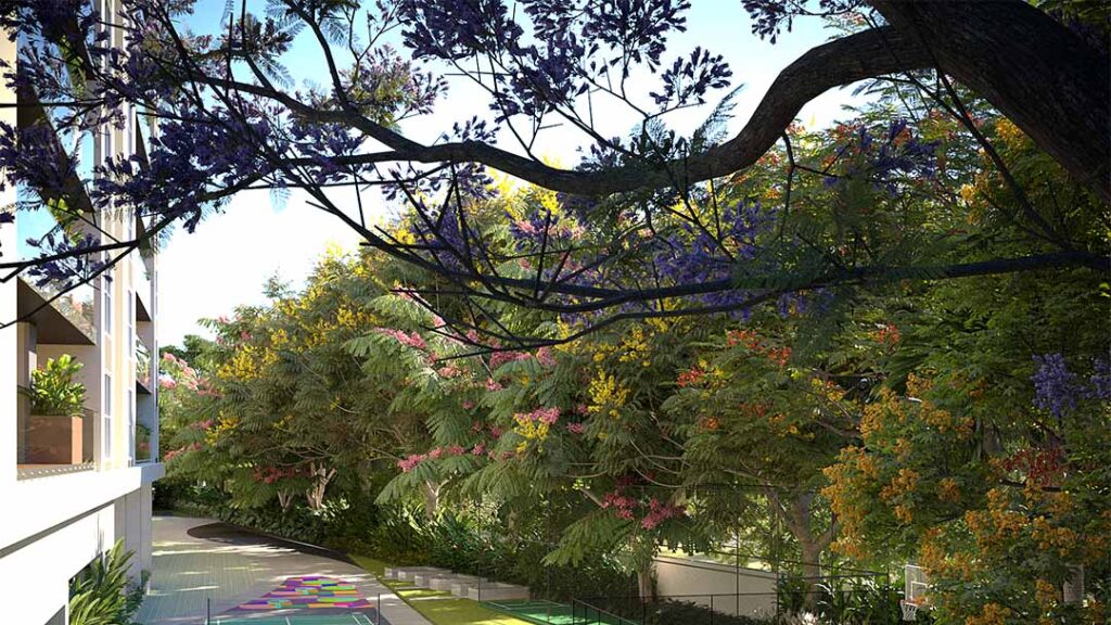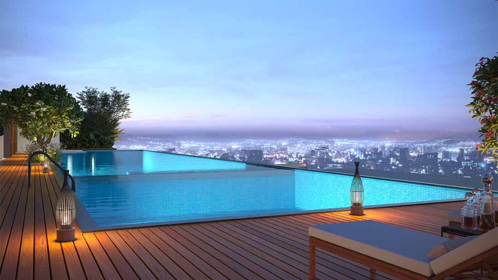 Residents enjoy 40+ world-class amenities, including an infinity pool, luxury clubhouse, spa, gym, café bar, sports courts, children’s zones, party decks, and landscaped outdoor spaces, curated for a 5-star lifestyle.